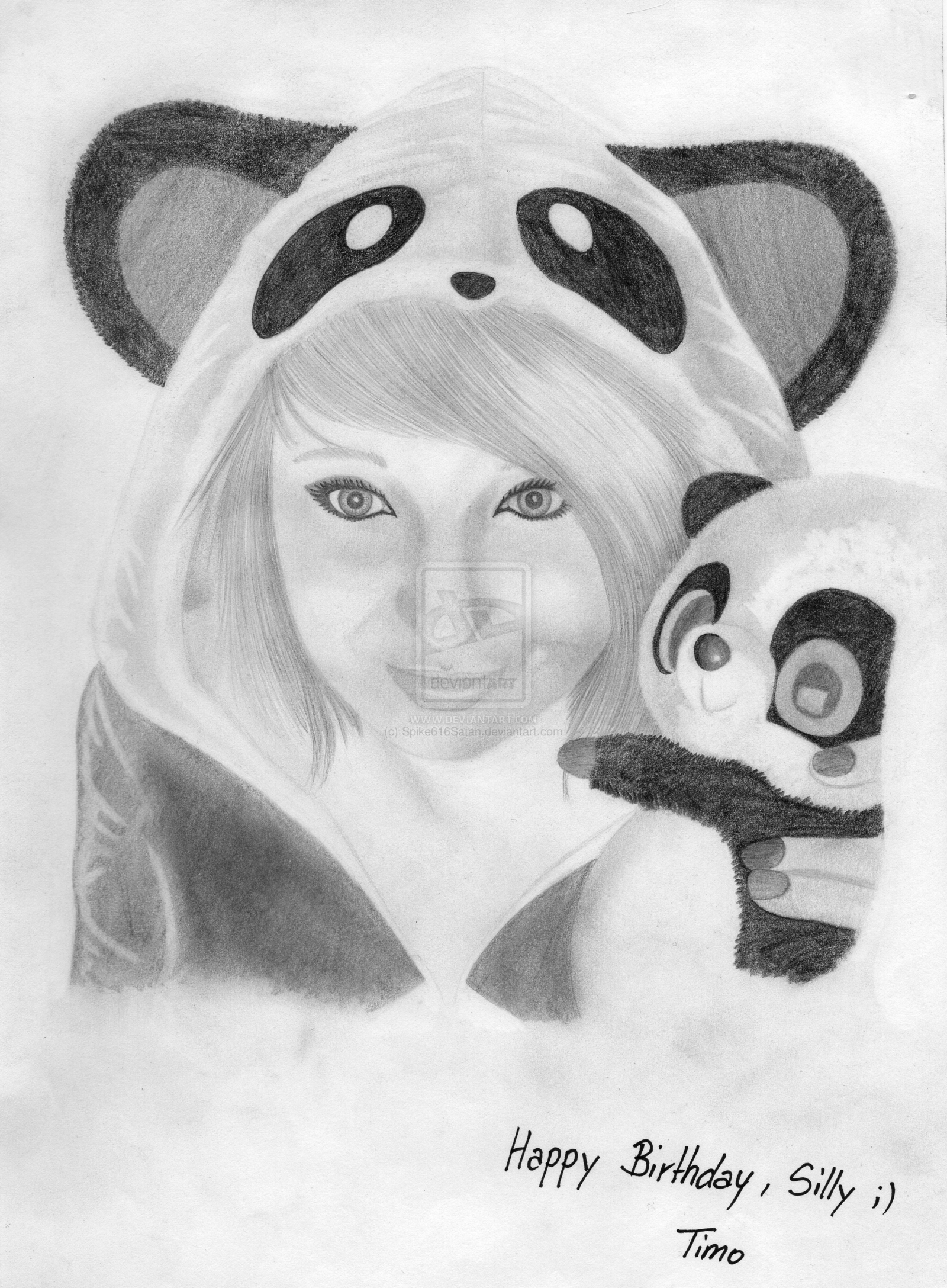 This was a birthday present for a friend. She liked pandas and so she got pandas. I think she liked it. I don't draw portraits very often, this was one of the few.